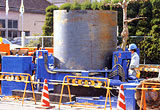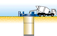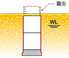 水中コンクリート打設後、ケーシングをG.L.まで引き抜き、コンクリート硬化後にケーシング内を水換えすれば立坑が完成します。