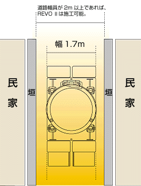 機械幅を1.7mにしたため、道路幅員が2mもあれば立坑を築造できるようになりました。
